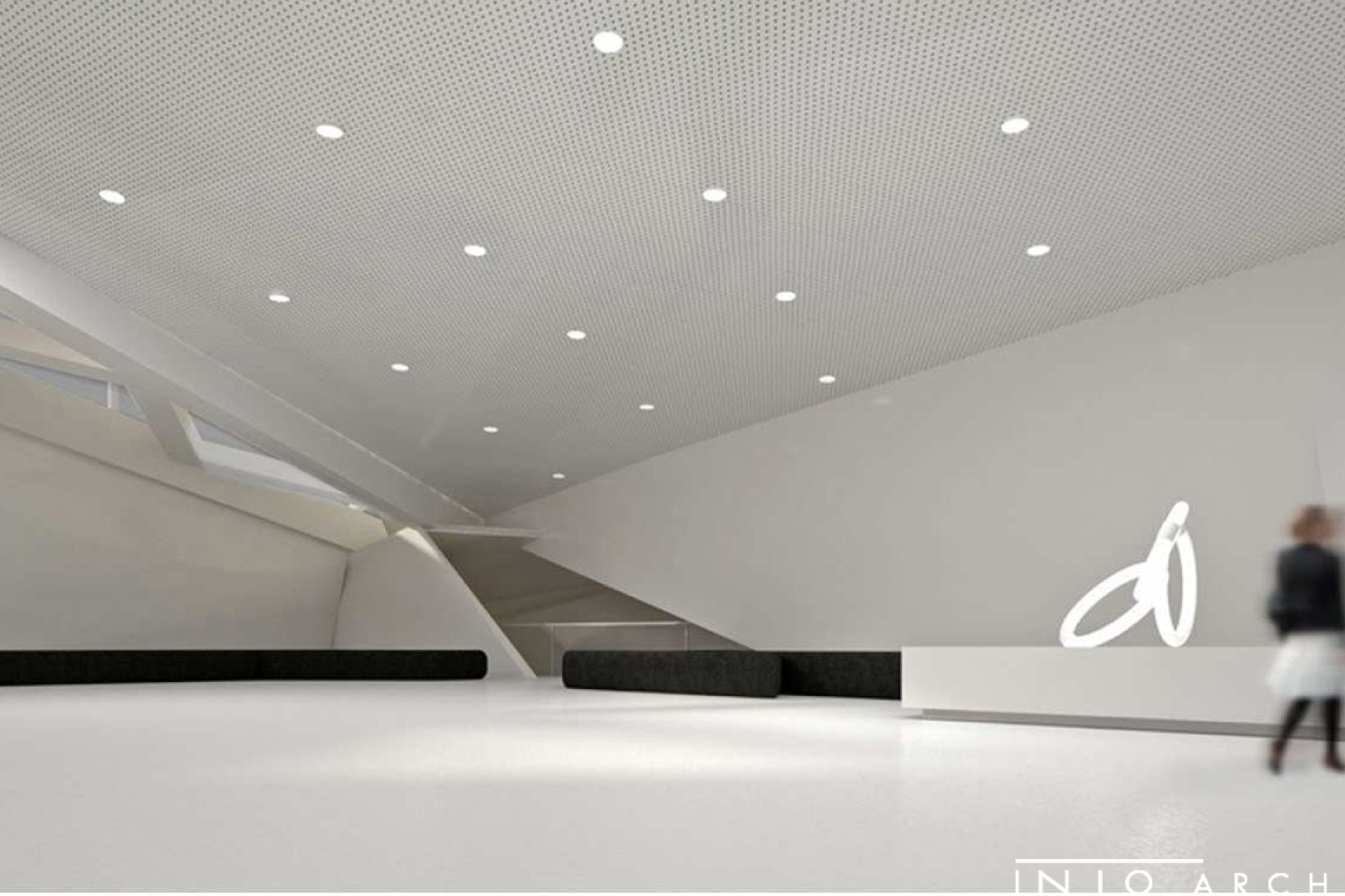 Projekt koncepcyjny nowoczesnego centrum designu, w którym architektura staje się tłem dla ekspozycji. Minimalistyczna forma, jednolita kolorystyka oraz precyzyjnie zaprojektowane oświetlenie budują neutralną, ale wyrazistą przestrzeń prezentacji sztuki i wzornictwa.