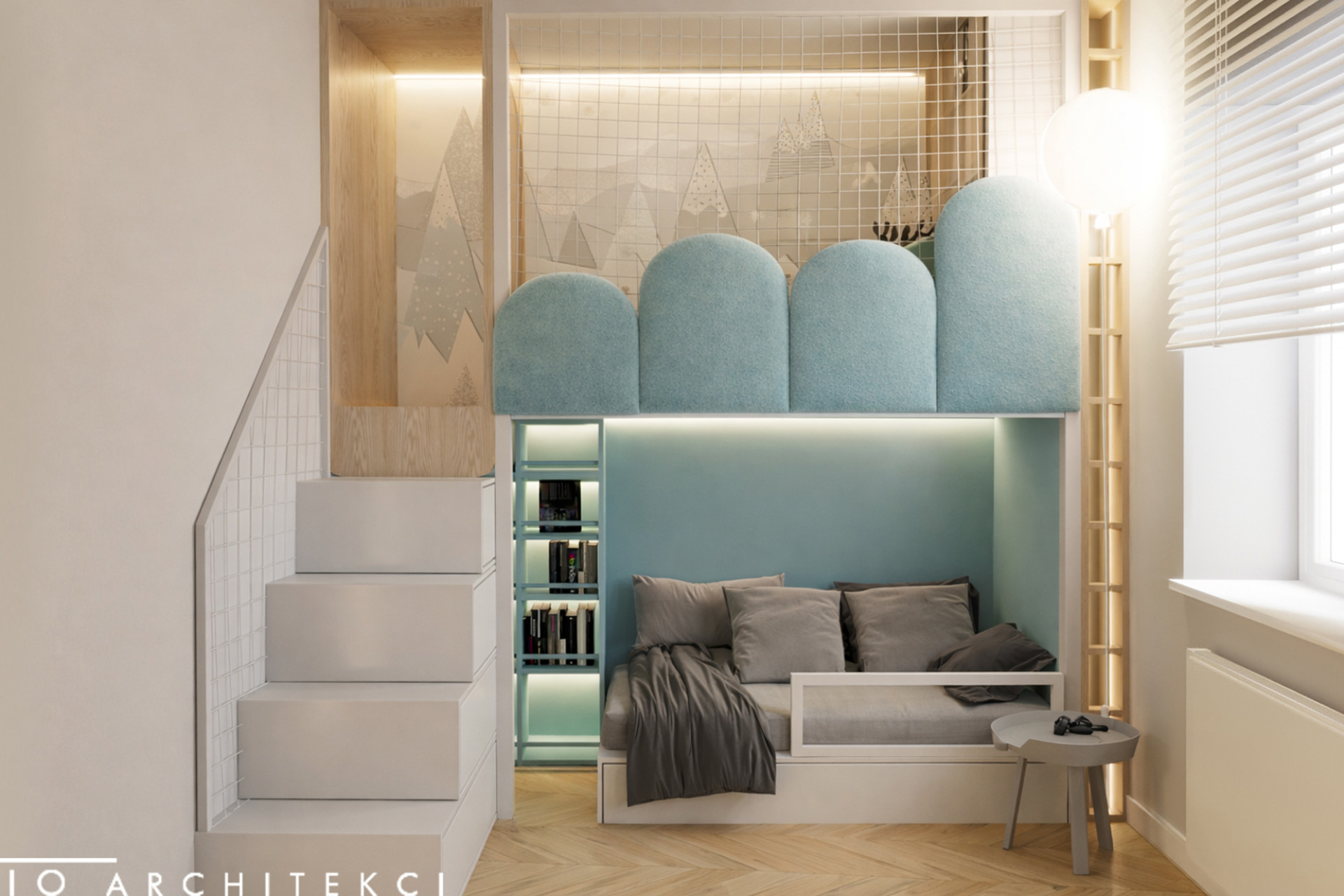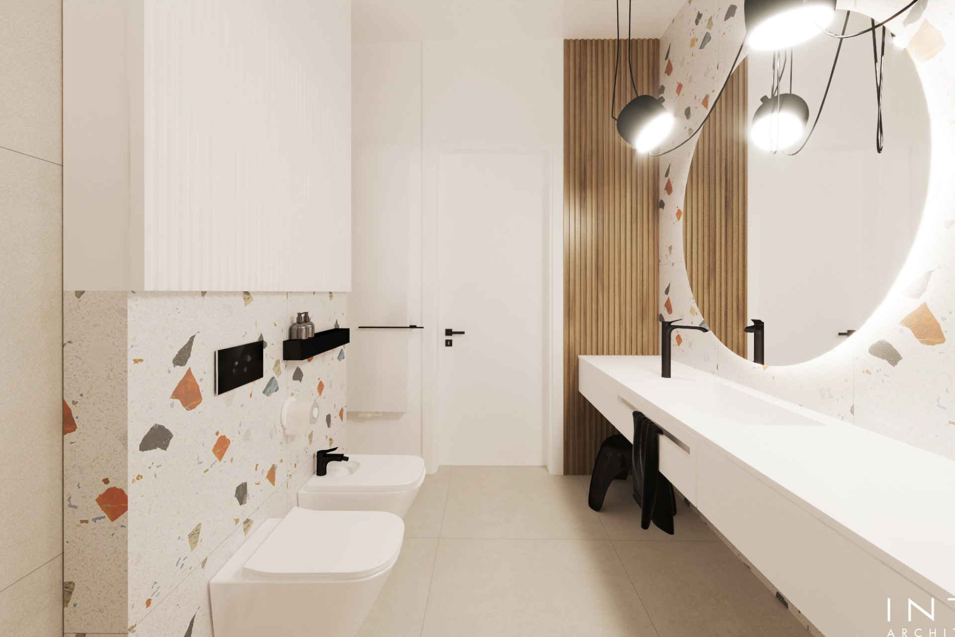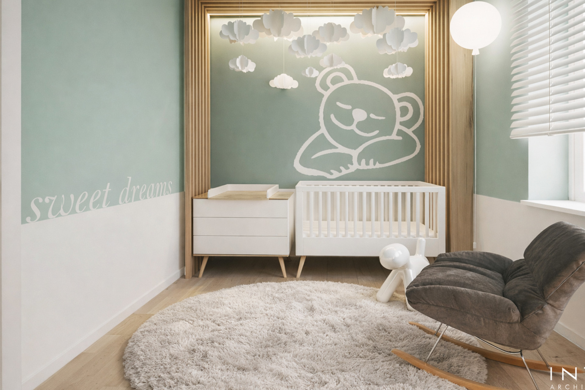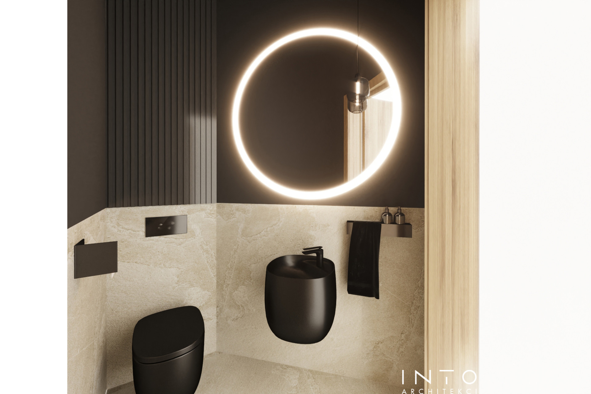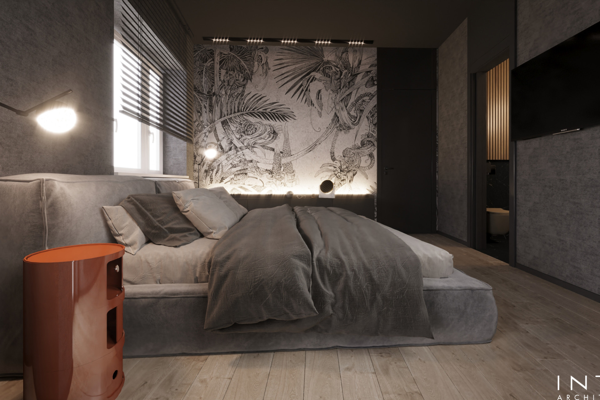 Projekt uwzględnia również zaawansowany system nagłośnienia, dyskretnie wkomponowany w zabudowę oraz układ wnętrza, tworząc spójną przestrzeń łączącą estetykę z wysoką jakością odbioru dźwięku.