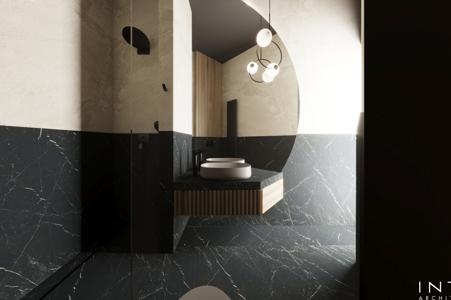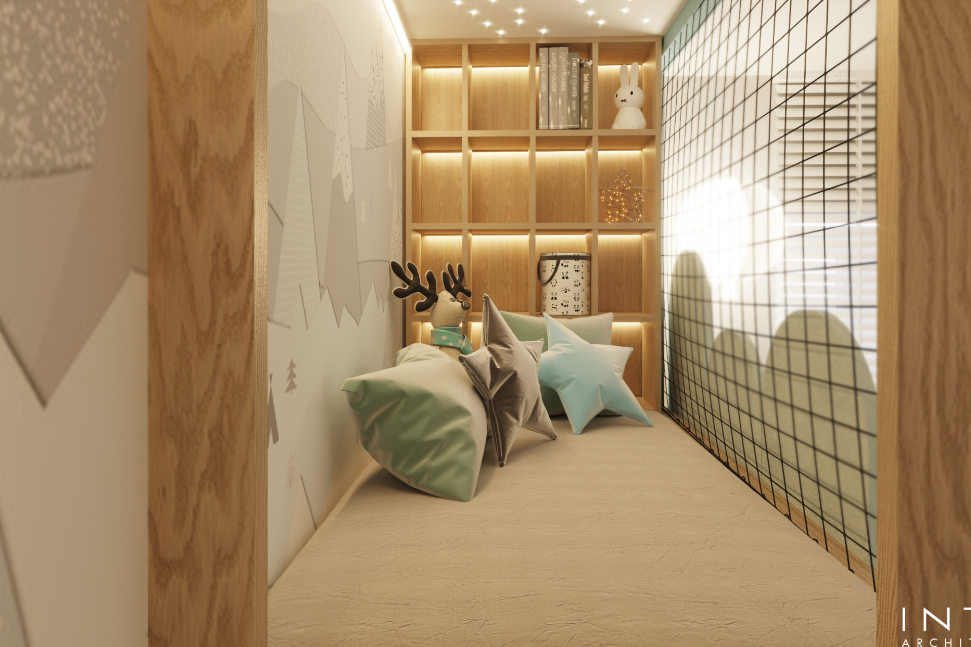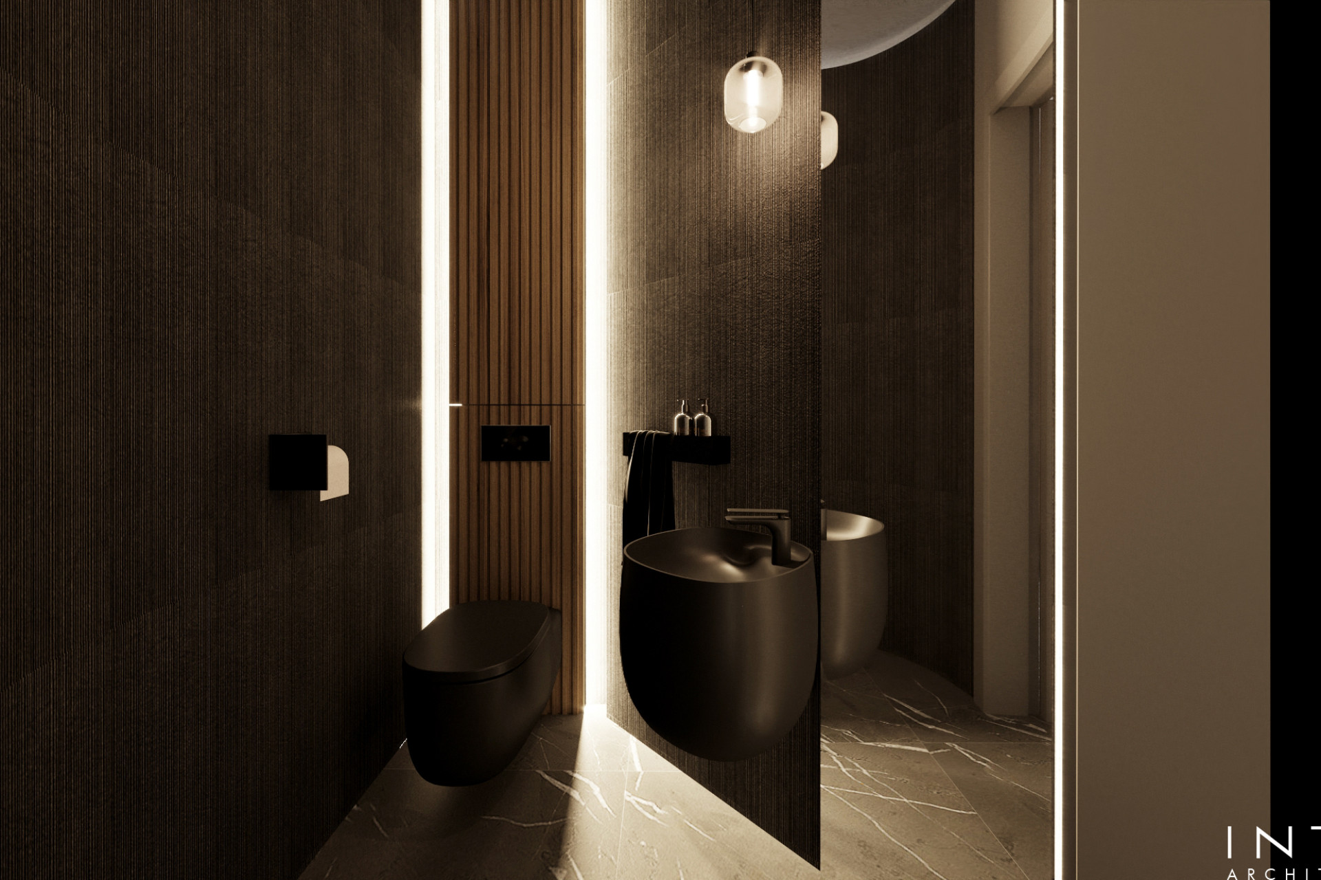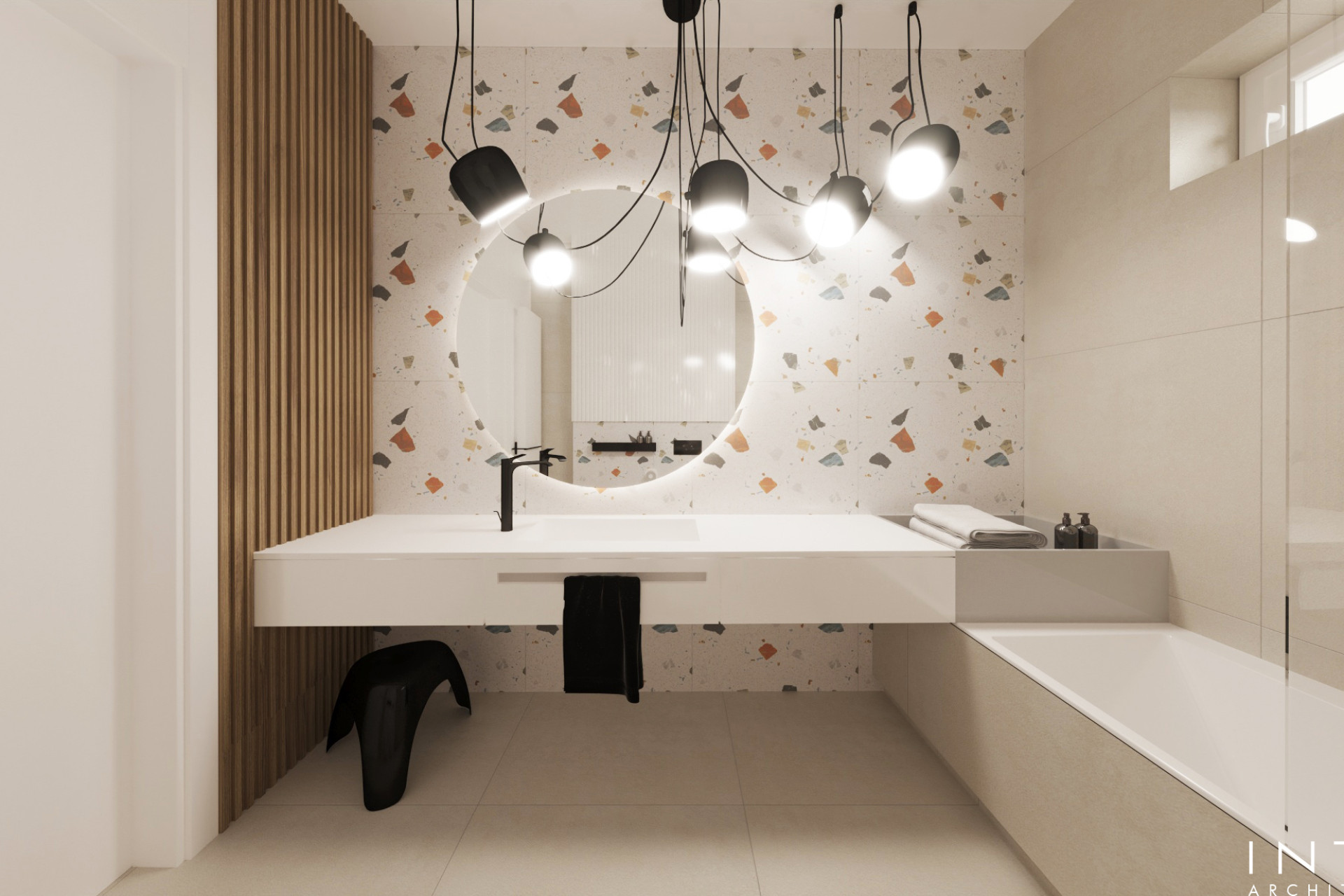 Projekt uwzględnia również zaawansowany system nagłośnienia, dyskretnie wkomponowany w zabudowę oraz układ wnętrza, tworząc spójną przestrzeń łączącą estetykę z wysoką jakością odbioru dźwięku.