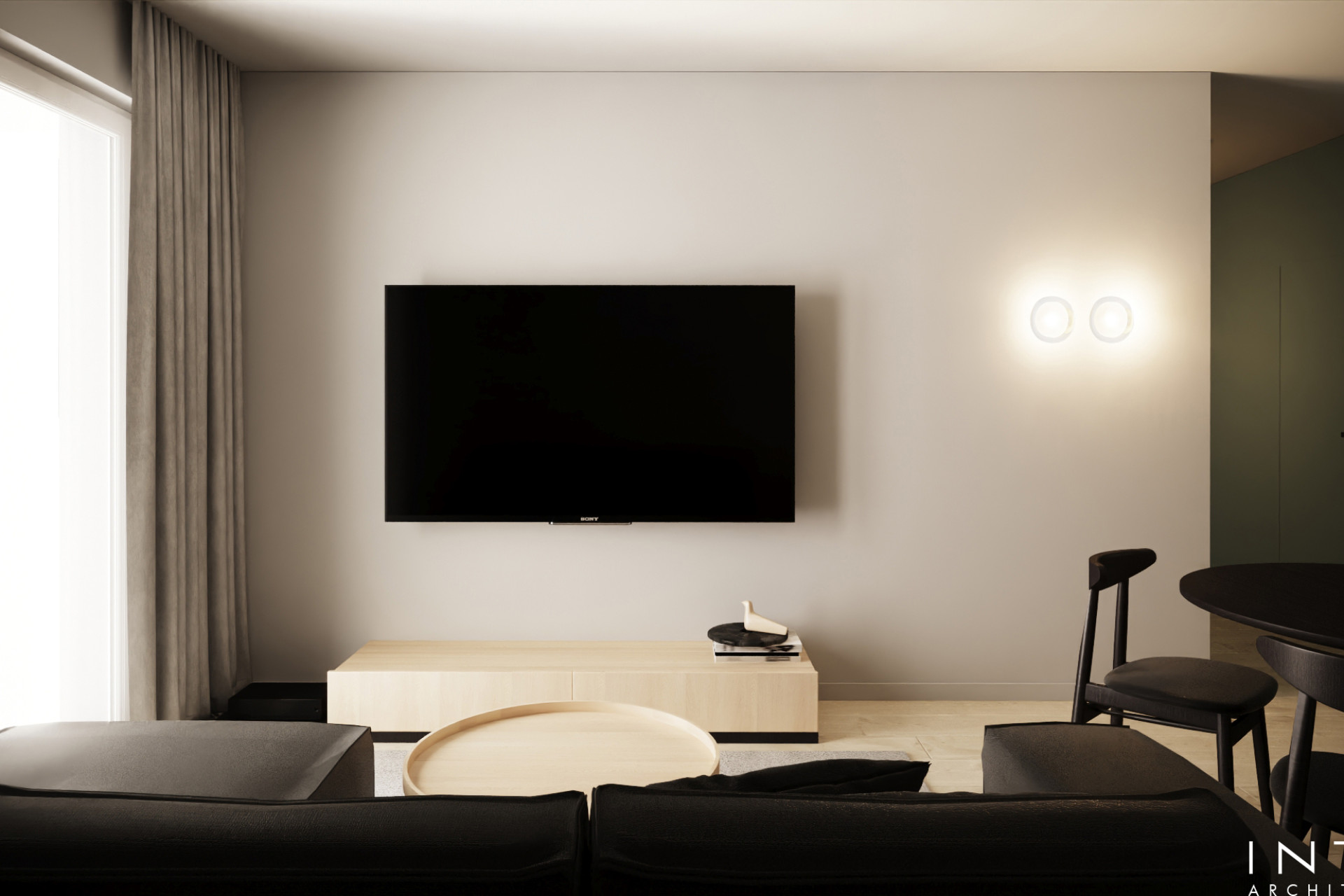 Projekt wnętrz mieszkania na wynajem w Poznaniu o powierzchni 50 m² — nowoczesna aranżacja z wyrazistą, niebieską zabudową i czarnymi meblami, zaprojektowana z myślą o atrakcyjności inwestycji i komforcie najemców.