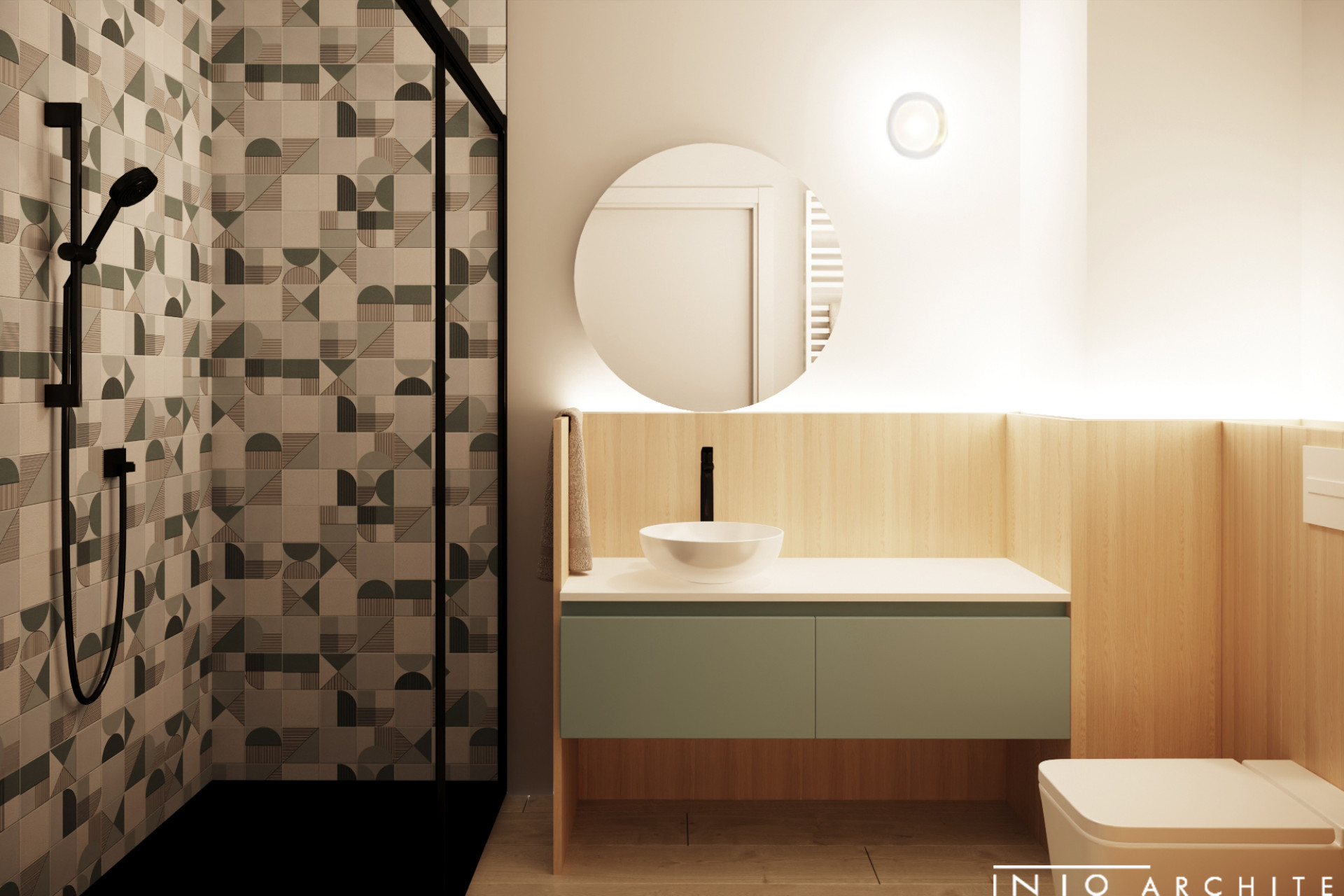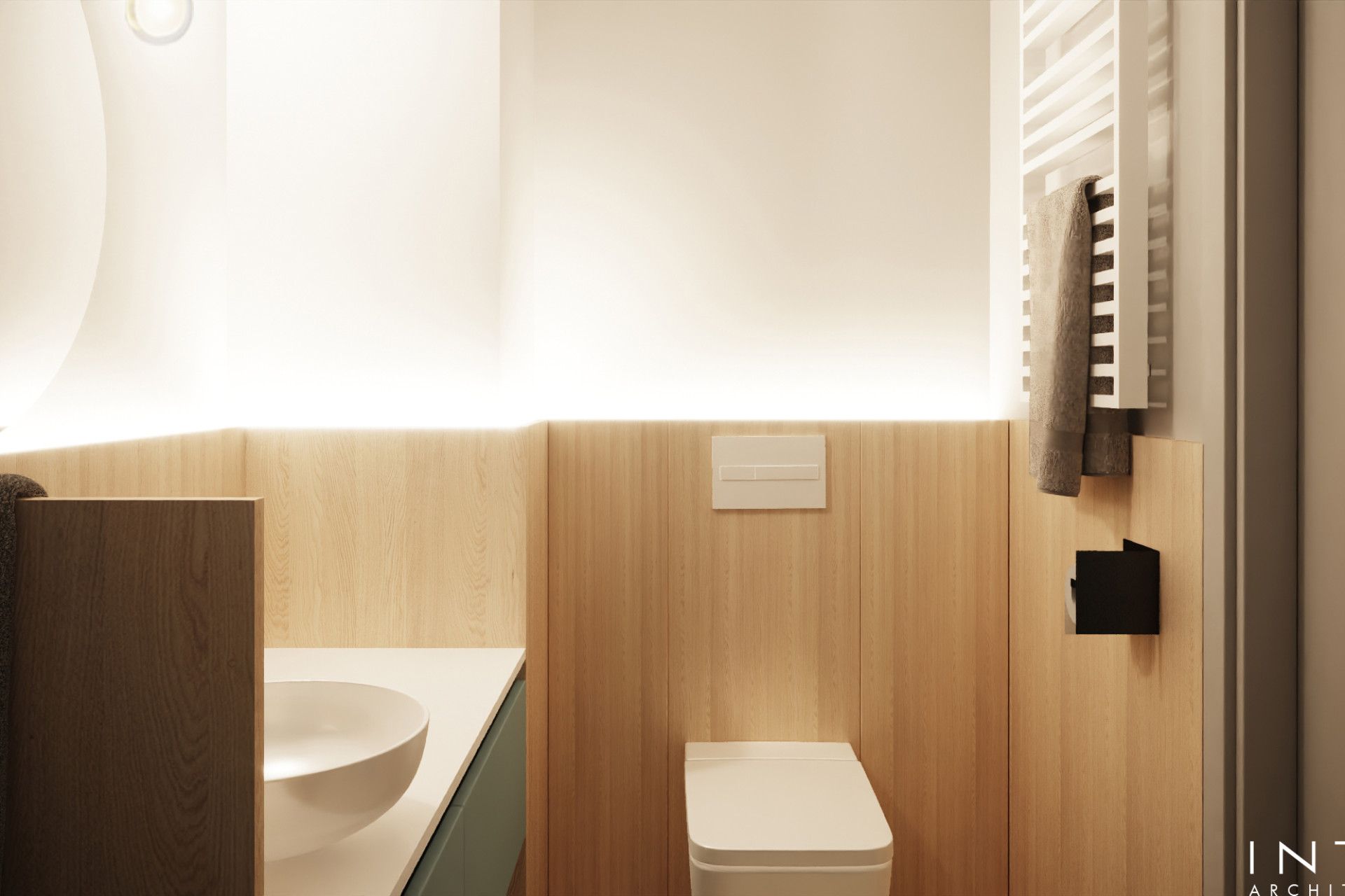 Każdy element aranżacji balansuje pomiędzy estetyką a efektywnością inwestycyjną. Niebieska zabudowa stanowi wyrazisty akcent wyróżniający wnętrze spośród standardowych ofert najmu.